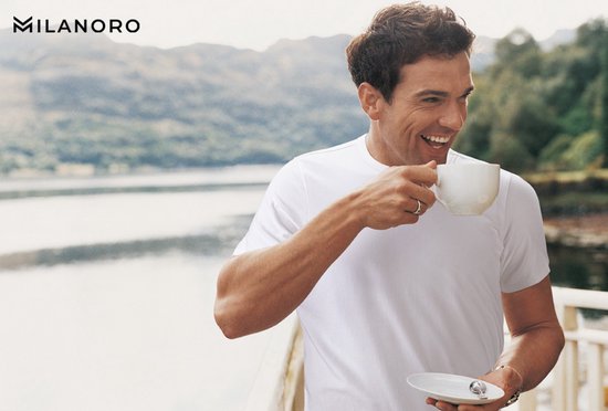 Tijdloze elegantie Open je kleerkast en kijk eens goed. Wat valt je op? Als je antwoordt met “een grote stapel T-shirts”, dan ben je niet de enige. Wil je ontdekken hoe je echt fantastisch kunt voor de dag komen in een T-shirt? Lees dan verder en ontdek hoe deze T-shirts jou kunnen helpen. Kies de juiste kleur Let bij het kiezen van een T-shirt vooral op de kleur. Zoek naar eenvoudige tinten die je makkelijk kunt combineren met andere kledingstukken. Wit en zwart zijn daarbij echte aanraders. Perfecte pasvorm en snit Een T-shirt komt pas goed tot zijn recht als het goed past. Een te grote maat kan ervoor zorgen dat je er zwaarter uitziet, terwijl een te kleine maat er ook niet mooi uitziet. Deze T-shirts zijn daarom voorzien van elastaan. Hierdoor sluiten ze mooi aan rond je armen en borst en zorgen ze voor een spierigere uitstraling. Daarnaast zijn ze ook nog eens ontzettend comfortabel! Kwaliteit boven alles Stijlvolle kleding is niet alleen qua uiterlijk aantrekkelijk, maar ook van uitstekende kwaliteit! Je wilt toch ook dat je favoriete T-shirt er na tientallen wasbeurten nog steeds fantastisch uitziet? Hoge kwaliteit staat ook gelijk aan duurzaamheid.dat ze heerlijk zacht zijn. Een extraatje voor jou en je partner! Dankzij de bamboevezels voelen deze T-shirts zijdezacht aan. De geurStijl is niet alleen visueel aantrekkelijk, maar ook aangenaam voor de neus. Iedereen zweet wel eens, maar je wilt niet een T-shirt dat je extra laat zweten of onaangename geurtjes vasthoudt. Dit is weer een reden waarom je dol zult zijn op deze T-shirts van bamboevezels! Ze zijn niet alleen ademend, wat betekent dat je minder zweet, maar ze zijn ook bacterie- en geurremmend, zodat je niet met vervelende geuren hoeft te kampen. Bovendien hebben ze een betere vochtafname dan katoen, wat je helpt om gênante plekken onder je oksels te vermijden!Extra Omdat ze ademend en geurremmend zijn door de bamboevezel en toch warmte bieden, zijn ze perfect geschikt om onder een blouse te dragen. Zo blijf je heerlijk warm in de winter en voorkom je zweetvlekken in de zomer. Ze zijn ook iets langer dan de meeste andere T-shirts, waardoor ze beter in je broek blijven zitten. Als je de bovenste knoop van je blouse dichtmaakt...Als je graag een open gekleed hemd draagt, dan is deze V-hals echt iets voor jou. De kraag is namelijk zo diep uitgesneden dat niemand jouw T-shirt ooit zal opmerken. Het wordt jouw unieke stijlgeheim! Dus, als je klaar bent om talloze complimenten te ontvangen, wacht dan niet langer en klik op "bestel nu". Kenmerken: - Merk: Milanoro - Aantal stuks per verpakking: 3 stuks - Categorie: bamboe T-shirts, ondershirts - Verkrijgbare kleuren: zwart en wit - Pasvorm: slim fit en extra lang - Beschikbare maten: M t/m XXL - Kraag: verkrijgbaar met V-hals en ronde hals - Materiaal: 65% bamboe viscose, 30% katoen, 5% elastaan Klik hier voor een uitgebreid overzicht van alle maten.