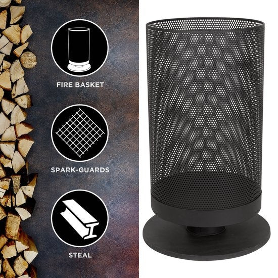 BBQ Collection Vuurkorf met Vonkenscherm - Tuinhaard 44,5 x 72,5 cm - Buitenhaard met Pook - Houtkachel voor Tuin en Terras - Vuurschaal voor Buiten - Carbon Staal