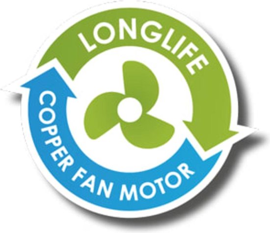 - Krachtige, aerodynamische ventilatorbladen met een praktisch beschermrooster en een hoogwaardige kopergewikkelde motor, kabellengte: 164 cm