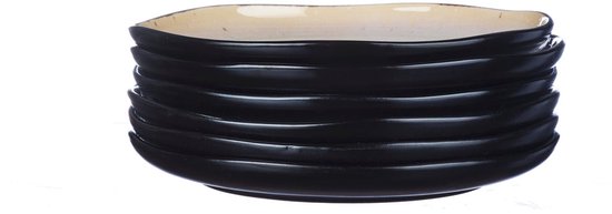 Dit stijlvolle bord met een moderne vorm en rechte randen is ideaal voor al uw gerechten, van voorgerechten tot desserts. De zwarte buitenkant voegt een luxe en verfijnde uitstraling toe aan uw tafel, terwijl het reactieve email aan de binnenkant zorgt voor een diepgaand en uniek patroon.