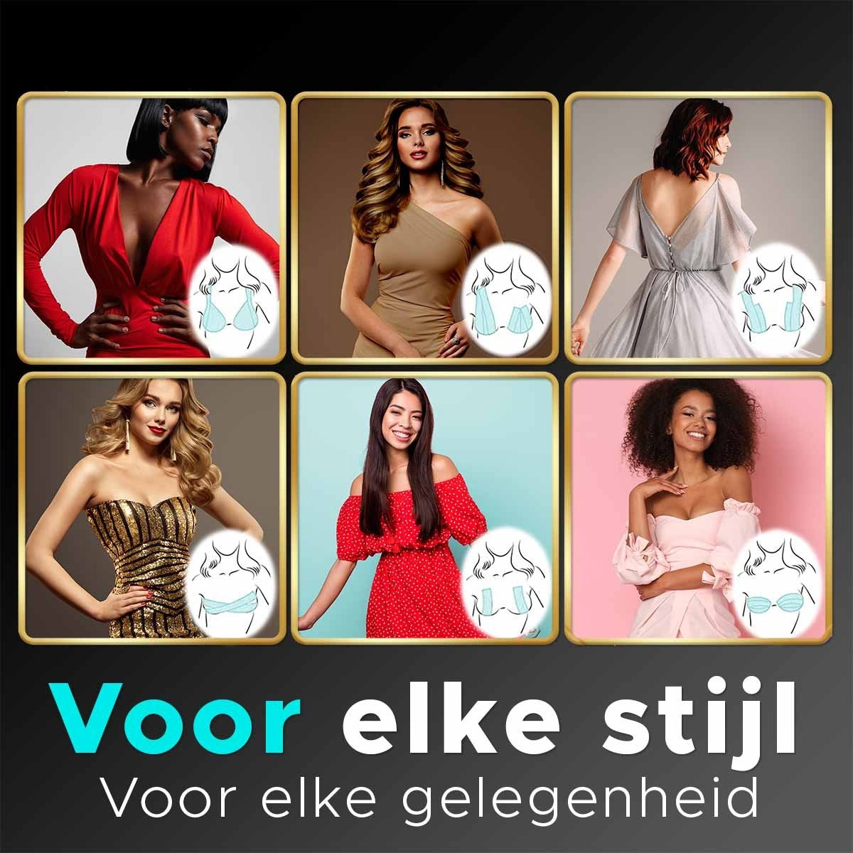 Je hebt een prachtige jurk met open rug, diep uitgesneden decolleté of strapless. Hiervoor hebben wij echt onzichtbare borst tape die de hele dag en nacht blijft zitten, zodat jij vol zelfvertrouwen kan stralen.