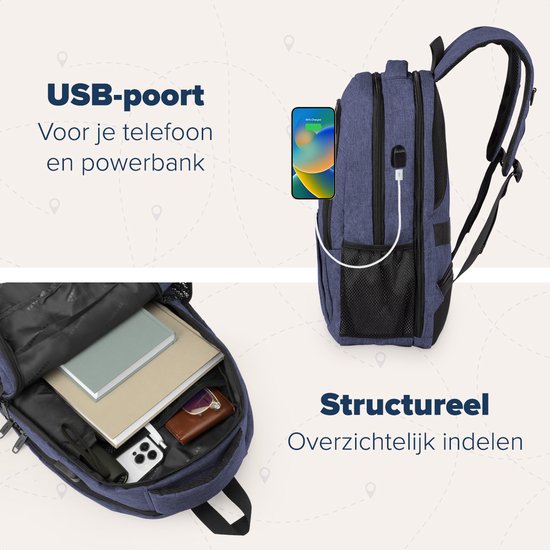 TRVLMORE Rugzak - 28L - 15,6 inch - Laptop Rugtas - Schooltas - Unisex - Spatwaterdicht Blauw