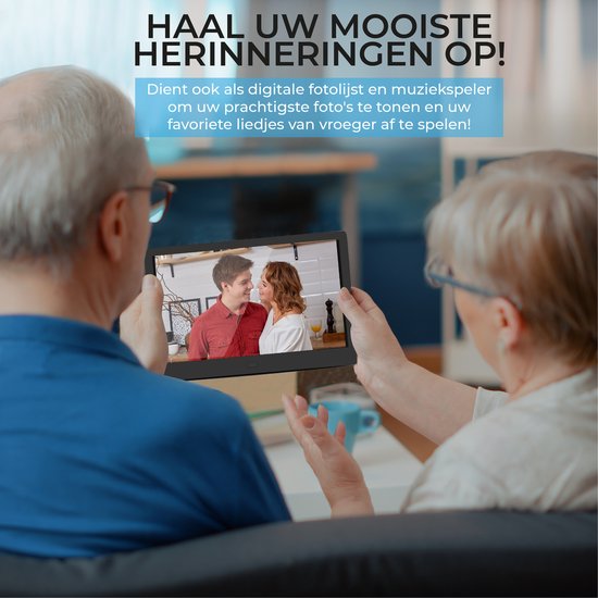 Gelukkig is het langetermijngeheugen bij ouderen met dementie vaak nog goed intact. Kijk samen naar foto’s en zing samen liedjes uit het verleden! Onze kalenderklok kan ook dienen als digitale fotolijst en mediaspeler. Verzamelen van uw mooiste herinneringen.undefined