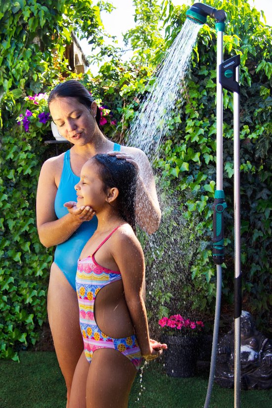 Deze douche is eenvoudig te plaatsen in de tuin of op het terras dankzij het drievoudige statief. Met de grondpen kun je de douche bovendien stevig bevestigen in het zand of gras. Zodra de buitendouche op de ideale locatie staat, sluit je eenvoudig de tuinslang aan en geniet je van een verfrissende douche of begin je met het besproeien van je planten!Verstelbaar in diverse hoogtes en posities
