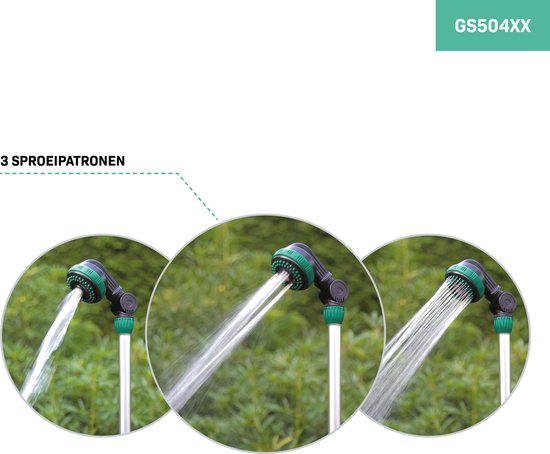 Geef je planten, jezelf of een ander een verfrissende douche met deze veelzijdige sproeilans. Met drie verschillende sproeistanden, een lange stang en een sproeikop die 180° verstelbaar is, heb je altijd de juiste straal voor elke gelegenheid. Dit is de perfecte aanvulling op je irrigatiesysteem. Ideaal voor (hoog) hangende planten, heerlijk als tuindouche... en onmisbaar voor waterplezier op warme dagen!