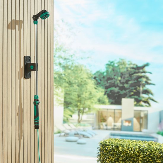 De sproeilans/tuindouche is licht van gewicht en heeft een ergonomisch ontwerp met een Soft Grip-handvat. Het bedienen van de watertoevoer gaat eenvoudig met een schuifknop, en dankzij de universele snelkoppeling koppel je de sproeier aan alle gangbare systemen van tuinslangen.