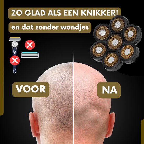 Ben je klaar met ongewenst haar en met scheermessen die snel bot worden en nare wondjes achterlaten tijdens het scheren? De Sansbeauté® 6-in-1 SkullSharp Classic | 7 HEAD met twee scheerkoppen is de ideale oplossing! Met 7 (!) flexibele 7D scheerkoppen, multifunctionele opzetstukken en een draadloos ontwerp verwijder je elk haartje van je hoofd, gezicht en lichaam in een handomdraai! De 7 roterende scheerbladen passen zich moeiteloos aan de contouren van je gezicht en hoofd aan, waardoor elk haartje wordt verwijderd! Dankzij de 6 verschillende opzetstukken heb je alles direct bij de hand, met slechts één investering! De handige LED-display laat je eenvoudig zien wanneer je moet reinigen en opladen. Als extraatje ontvang je bij deze set een exclusief e-book vol met waardevolle tips voor duurzaam gebruik. Bovendien wordt deze set geleverd met een EXTRA scheerkop ter waarde van €23,99! Kortom, met de Sansbeauté® 6-in-1 SkullSharp Classic | 7 HEAD ben je verzekerd van een glaVoor een zijdezachte huid zonder irritaties of beschadigingen. Bestel nu en ondervind het zelf!
