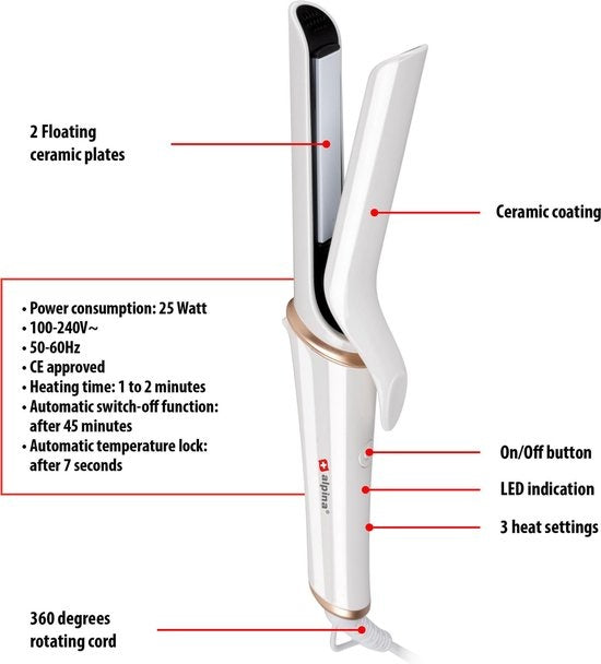 alpina Stijltang - Keramisch - 160°C-180°C-200°C - Wit