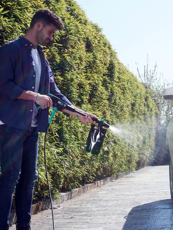 Inclusief schuimpot, vuilfrees, verlenglans en een 8 meter lange hogedrukslang.