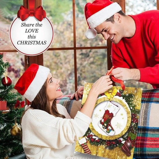 Assortiment van 12 kerstcadeauzakjes met touwhandvaten en bijpassende cadeau-etiketten - 4 Grote (31 x 40 cm), 4 Middelgrote (26 x 32 cm) en 4 Kleine (18 x 24 cm)