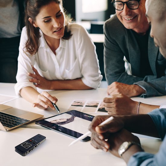 Je kunt nu altijd alles terugluisteren! De voice recorder is in staat om 12 uur aan één stuk door op te nemen. Met een interne opslagcapaciteit van 8GB kun je tussen de 12 en 569 uur aan opnames bewaren (afhankelijk van de bitrate)! Zorg ervoor dat je niets mist van een cruciaal recruitment interview.w, een vergadering of elk ander soort gesprek!
