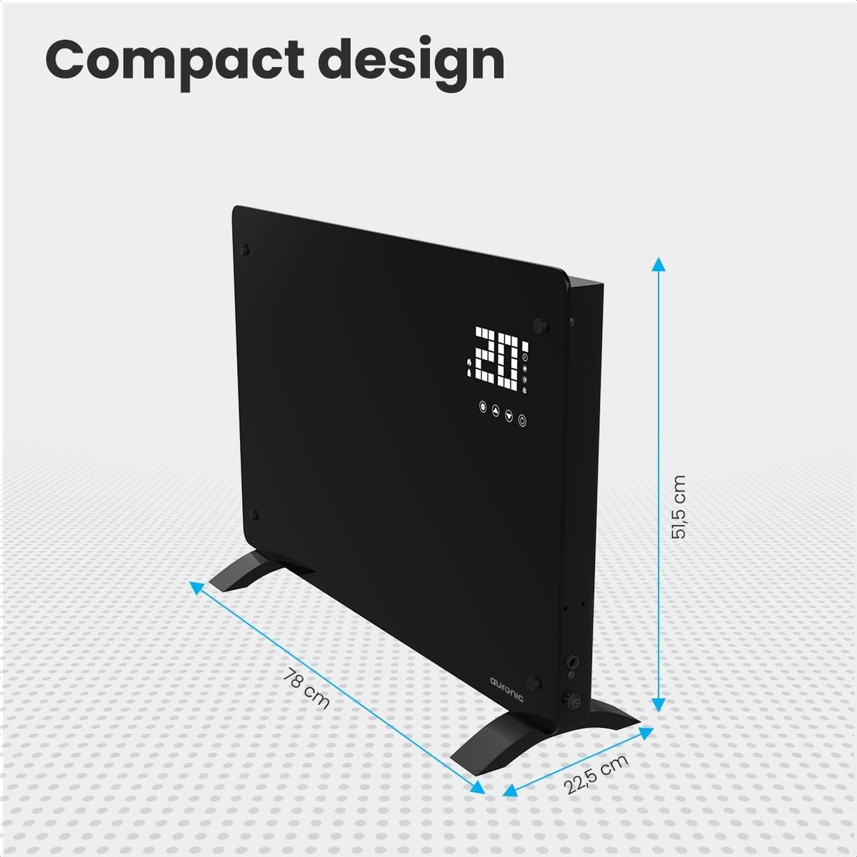 Auronic Elektrische Kachel – Convectorkachel met Thermostaat en Afstandsbediening - Paneelverwarming - tot 22 m2 - 2000W Heater - Zwart