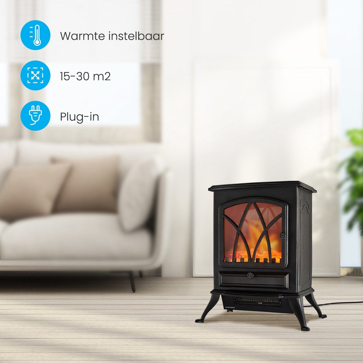 Auronic Elektrische Sfeerhaard - Realistisch LED Licht - Vrijstaand - 1000/2000 W - Zwart