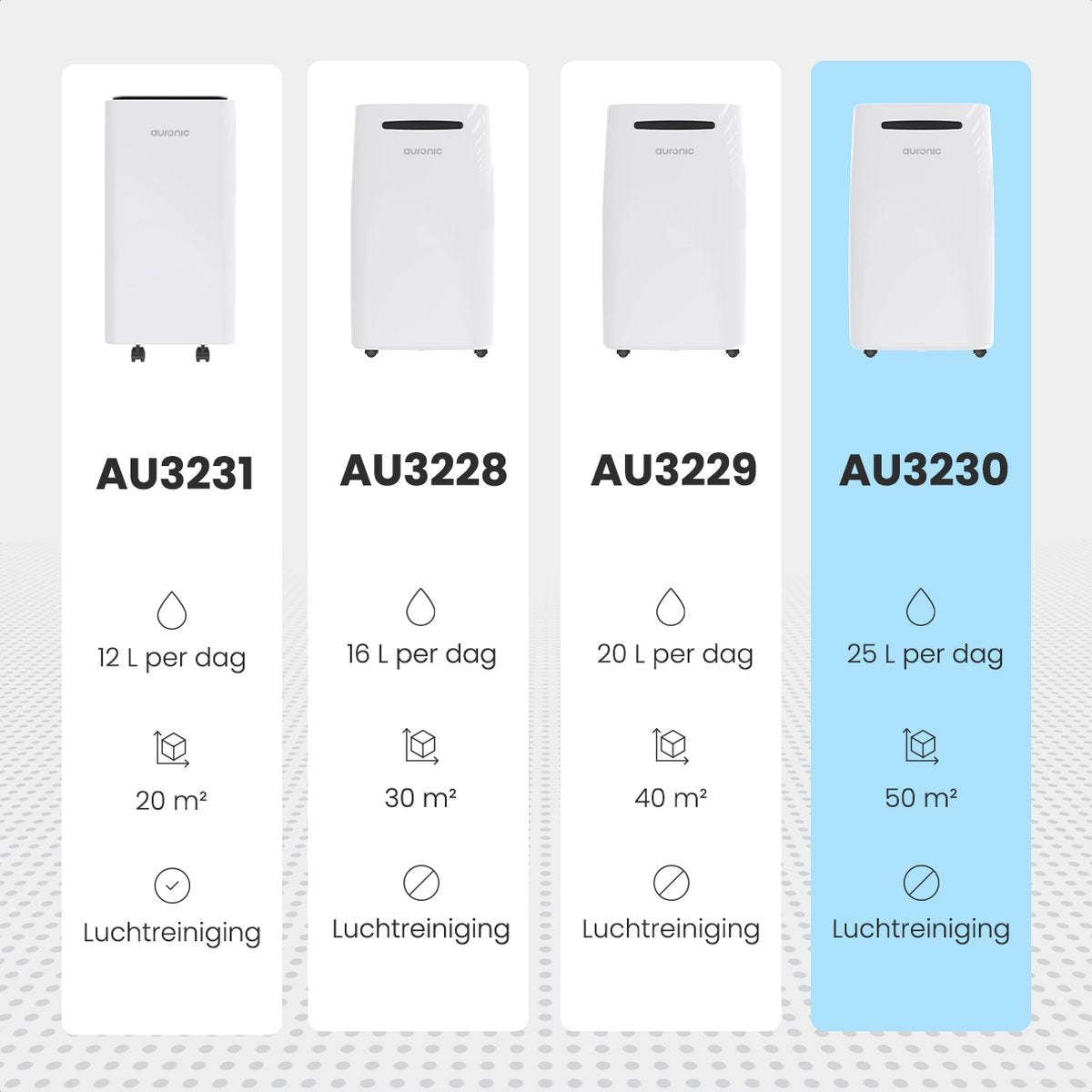 Auronic Luchtontvochtiger - 25L - Tot 40 m² - 420W - 34x21x55cm - Wit