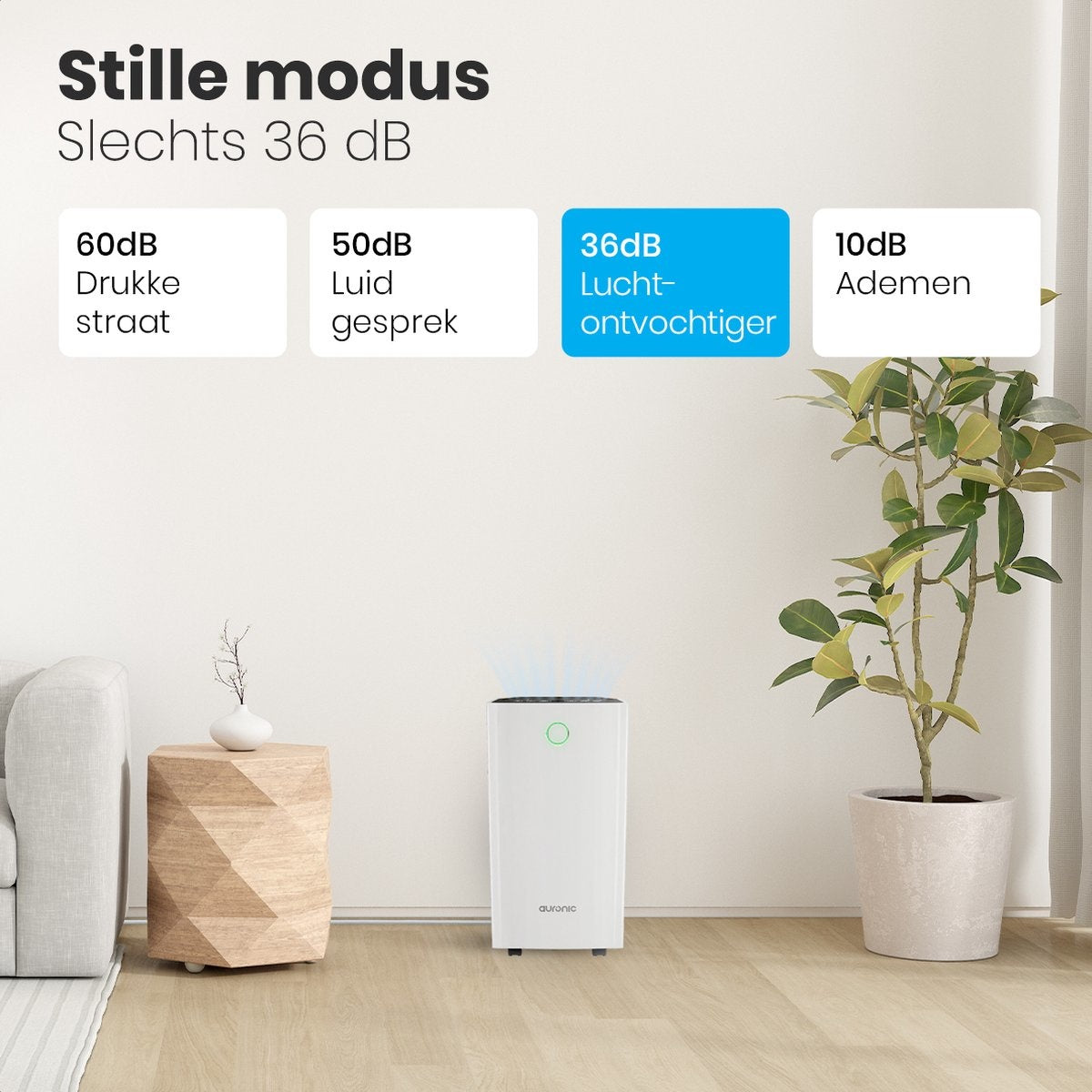 Met een geluidsniveau van slechts 36 dB werkt deze luchtontvochtiger fluisterstil, ideaal voor gebruik in de woonkamer, slaapkamer of werkkamer. Dit maakt hem perfect voor langdurig gebruik zonder dat hij storend is.