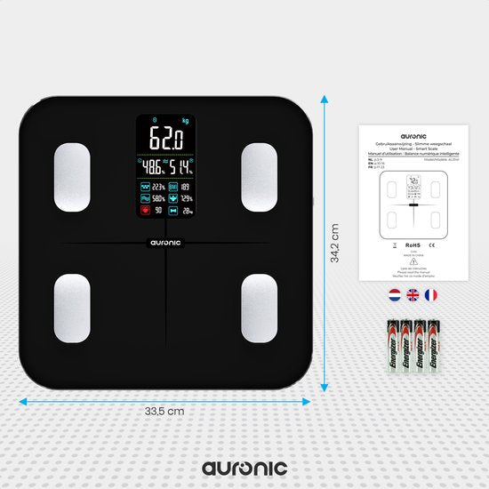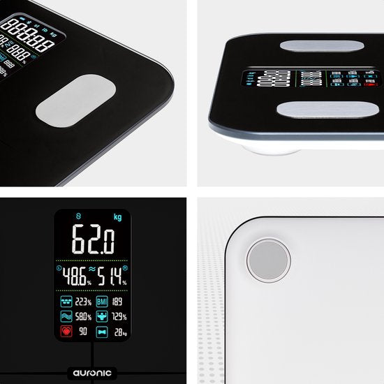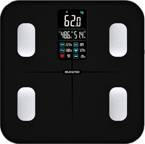 Auronic Personenweegschaal - Lichaamsanalyse & Vetpercentage - Digitaal - 15 Metingen - Zwart