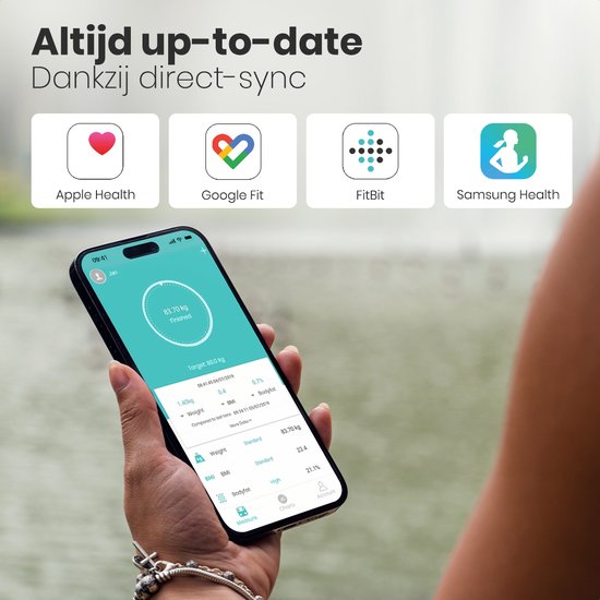 - Compatibel met apps: Apple Health, Google Fit, Fitbit, en Samsung Health apps