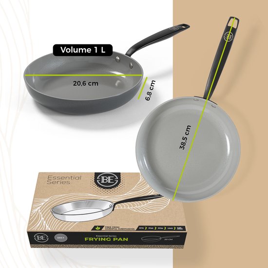 BE Living Essential Koekenpan - Ø 20 cm - Keramisch - PFAS vrij - Inductie - Grijs