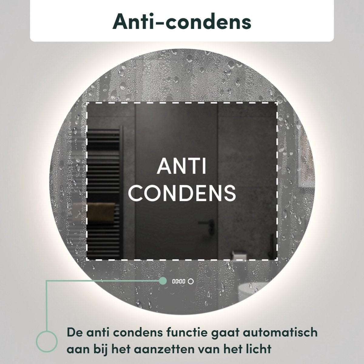 Beloura Badkamerspiegel met Verlichting - Ronde Badkamer Spiegel - Verwarming - Klok - LED - 60 cm