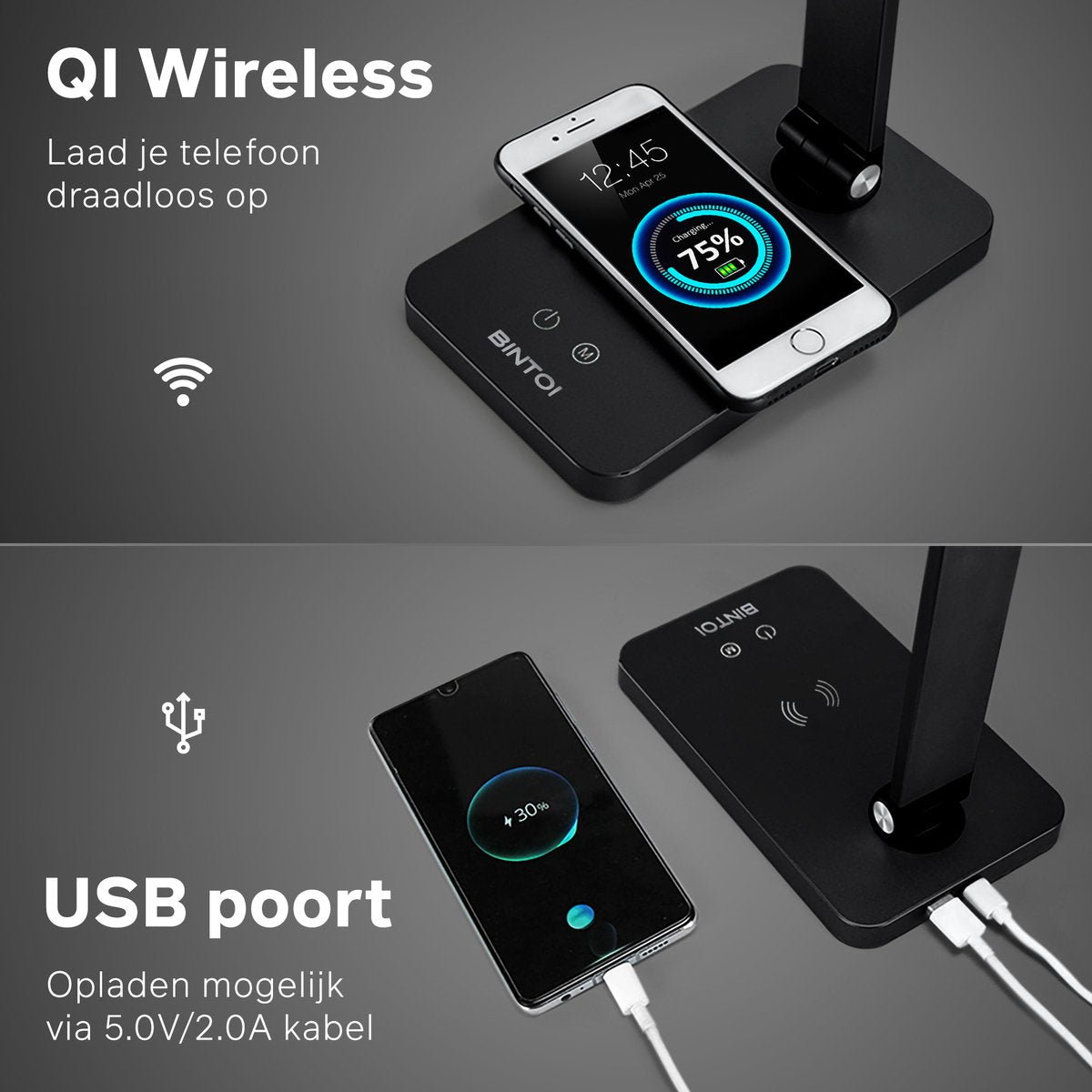 Dankzij de Qi technologie kunnen alle smartphones waar de Qi in is geïntegreerd, via deze bureaulamp draadloos worden opgeladen. Controleer voor aankoop eerst of uw telefoon het draadloos opladen (Qi) ondersteunt. zo niet, dan kunt u de USB-poort nog steeds gebruiken om uw telefoon op te laden.