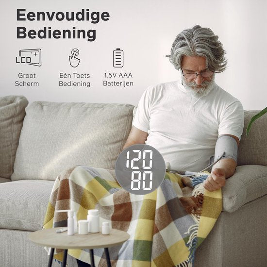 De bDe bloeddrukmeter biedt een betrouwbare meting van systolische druk (bovendruk), diastolische druk (onderdruk) en de hartslag door middel van de oscillometrische methode.