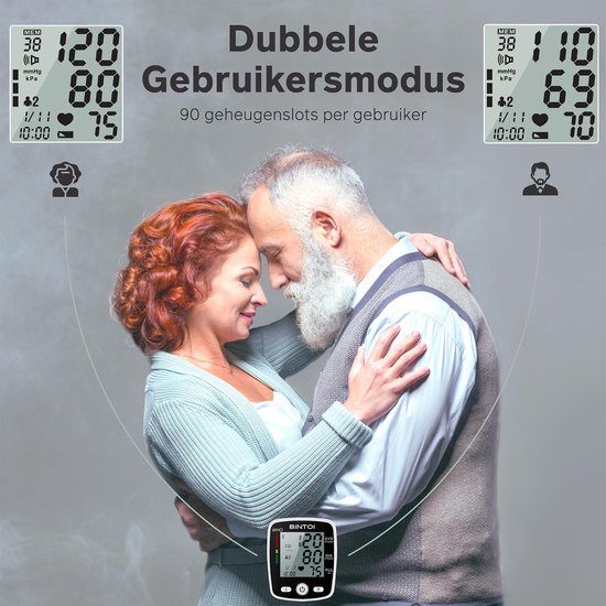 Bintoi® BXE100 - Bloeddrukmeter Pols - Hartslagmeter - USB Oplaadbaar - Incl. Opbergcase - 2 Gebruikers