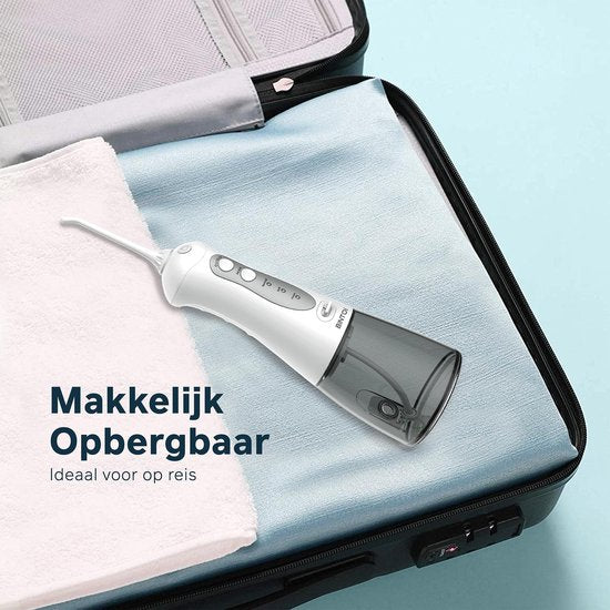Bintoi® iSonic F500 - Waterflosser - Professionele Monddouche - Flos voor Beugels - Flosapparaten - 3 Standen en 4 Opzetstukjes - IPX7 Waterdicht - Incl. Reistas Cadeau