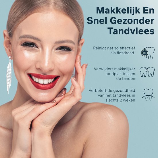 De hoogdruk pulsierende waterstralen stimuleren de bloedsomloop in het tandvlees, wat bijdraagt aan een betere mondgezondheid.voor een beter functionerend en gezonder gebit. Bij klachten van zwak tandvlees, een onaangename adem, tandbederf, tandplak en/of parodontitis is een waterflosser absoluut noodzakelijk. Natuurlijk is de waterflosser bijzonder nuttig voor mensen met een beugel!
