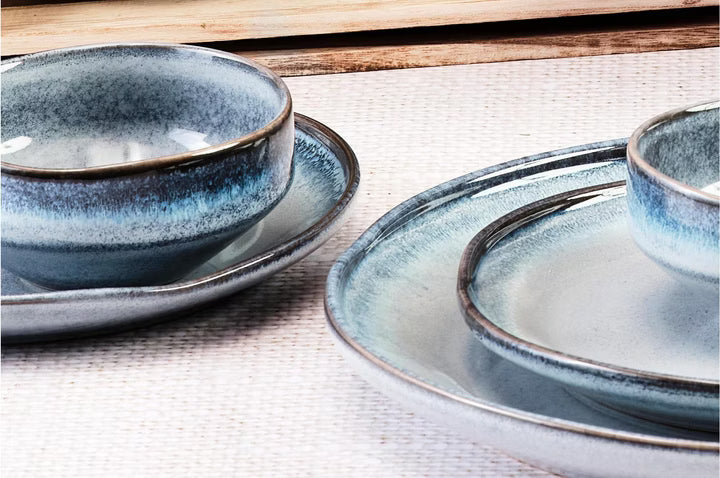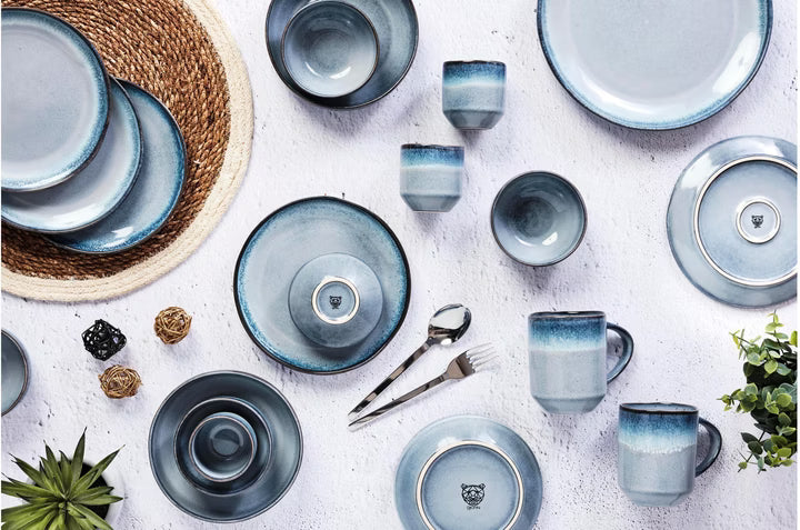 Deze 36-delige serviesset van Bjorn combineert functionaliteit met tijdloze elegantie. De set is uitgevoerd in diepe, duisterblauwe tinten met een rustieke, handgemaakte uitstraling en een matte afwerking die subtiele kleurvariaties benadrukt. Elke maaltijd krijgt hierdoor een moderne, aardse sfeer.
