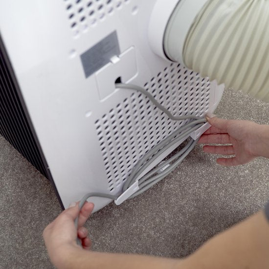De airconditioner is uitgerust met een 1,5 meter lange afvoerslang voor raaminstallatie. Daarnaast ontvang je een eenvoudig te monteren raamkit en een uitgebreide handleiding.