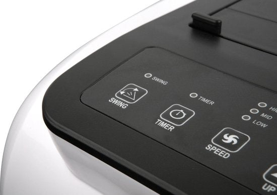 De temperatuurinstelling van de luchtkoeler varieert van 16 tot 31 graden Celsius. Dus zelfs als je het koud hebt, kun je op deze airco vertrouwen. Bovendien is hij zeer stil, wat ideaal is voor concentratie of tijdens de slaap. Je hoeft je stoel of bed niet te verlaten om deze airco te bedienen, want deze is ook te gebruiken met een afstandsbediening. Wanneer je de afstandsbediening niet gebruikt, is er een duidelijk 'touch control' paneel beschikbaar.