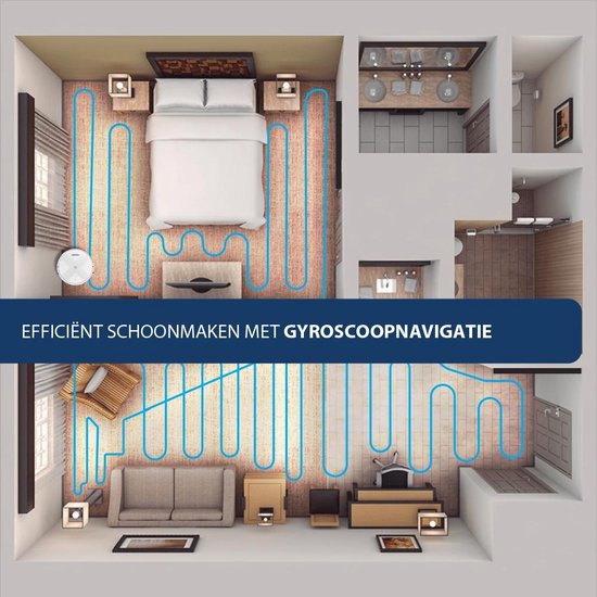 De gyroscoopnavigatie zorgt voor een gestructureerd schoonmaakpatroon zonder botsingen. Hierdoor worden meubels ontzien en blijft geen plekje ongereinigd.