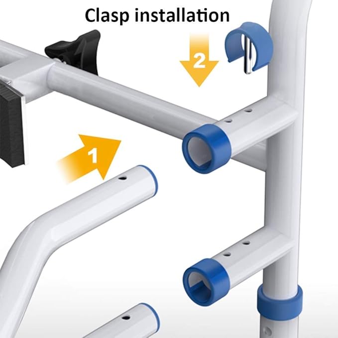 Gemaakt van duurzaam staal en voorzien van antislip armleuningen, biedt het frame optimale stabiliteit en voorkomt het uitglijden of vallen. De zachte kunststof leuningen verhogen het comfort bij gebruik.