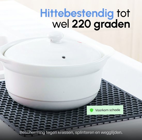 Hittebestendig tot 220°C: Ideaal als onderzetter voor hete pannen en als afdruipmat.