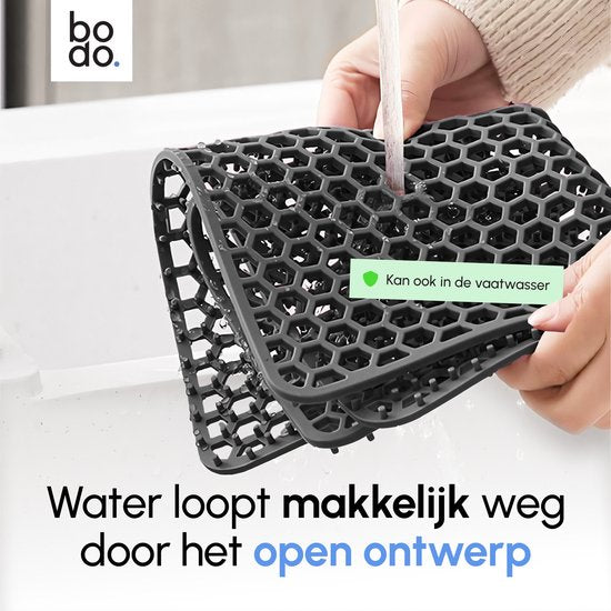 Bescherm je gootsteen en keukenblad met de hoogwaardige Siliconen Gootsteenmat van Bodo. Ook perfect te gebruiken als onderzetter of afdruipmat!