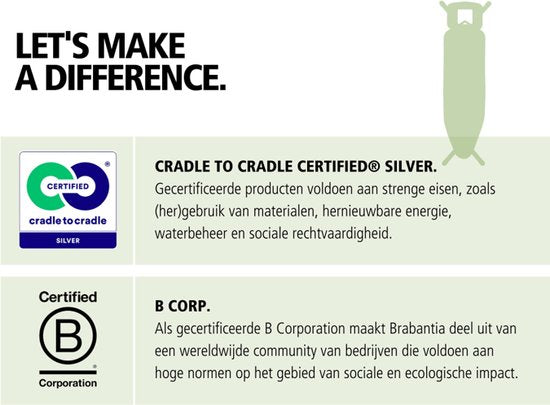 Opgericht in 1919, is Brabantia inmiddels een wereldwijd geliefd merk. Brabantia staat synoniem voor prachtige en functionele producten die het dagelijkse huishouden transformeren in gewaardeerde rituelen. Het assortiment omvat een verscheidenheid aan artikelen, zoals prullenbakken, droogmolens, strijkplanken, wasmanden, voorraadbussen, kookgerei en badkameraccessoires. Stijlvol en hoogwaardig, de producten zijn ontworpen met duurzaamheid in het achterhoofd, zodat je er lang van kunt genieten zonder schuldgevoel bij afvoer.Brabantia is een erkende B Corp, wat bevestigt dat het bedrijf een positieve bijdrage levert aan zowel mensen als het milieu. Dit concept wordt aangeduid als 'Designed for living'.