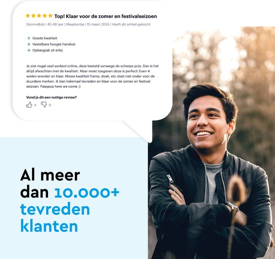 Geschikt voor elk terreinDankzij de stevige PVC-wielen kan de transportwagen soepel over zand, gras, grind of asfalt worden gereden. Perfect voor een picknick in het park, een wandeling op het strand of een avontuurlijke trip naar de camping. De 360-graden roterende voorwielen zorgen ervoor dat de bolderkar gemakkelijk te besturen is. Voor extra stabiliteit kun je de wagen eenvoudig vergrendelen met de ingebouwde rem.