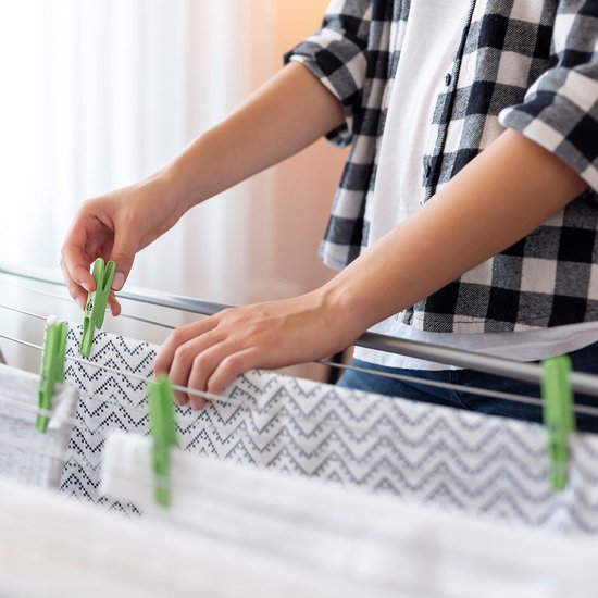 Dankzij het opvouwbare ontwerp kun je het droogrek moeiteloos opbergen wanneer je het niet in gebruik hebt. Het neemt minimale ruimte in en is daardoor perfect voor kleinere woonruimtes.