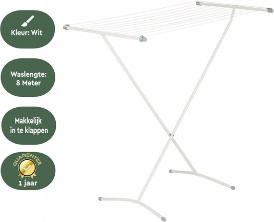 BRASQ Droogrek Staand Wit - 8 meter - Wasdroger - Inklapbaar Wasrek - Staand Droogrek - Droogrekken - 90x53x83 cm