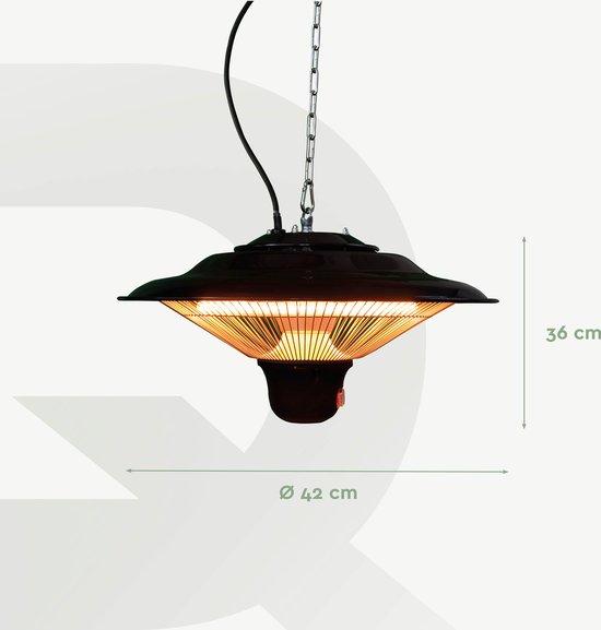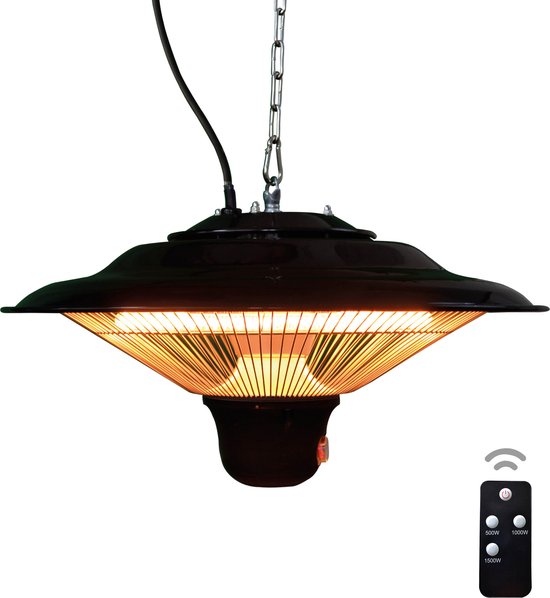 BRASQ Elektrische Terrasverwarmer Hangend PHC100 - Infrarood Heater 1500W - met Afstandsbediening - 3 warmtestanden - Voor binnen en buiten - Spatwaterdicht - Zwart