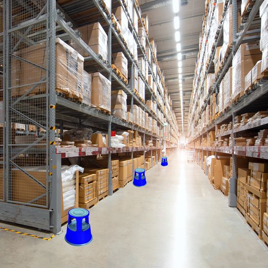 BRASQ Opstapkrukje Premium Blauw - Draagvermogen 150 kg - Opstapkruk - Olifantenvoet - Kantoorkruk - Roltrap - Kruk - Metaal
