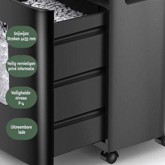 Met de verrijdbare functie kun je de shredder eenvoudig naar de gewenste locatie verplaatsen, wat ideaal is voor flexibel gebruik thuis of op het werk.