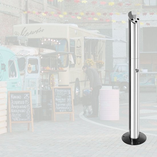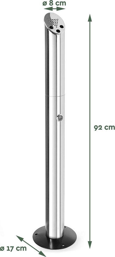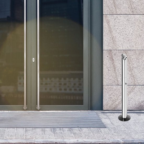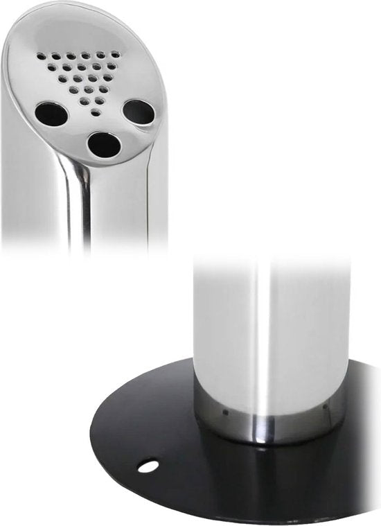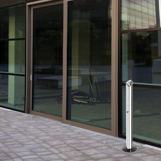 Gemaakt van hoogwaardig geborsteld roestvrij staal (RVS 304), verleent deze staande asbak een eigentijdse en luxe uitstraling. Door de uitstekende weerstand tegen corrosie is hij bestand tegen diverse weersomstandigheden, wat hem ideaal maakt voor langdurig gebruik buitenshuis.Efficiënt en stabielCompact en stijlvol ontwerp