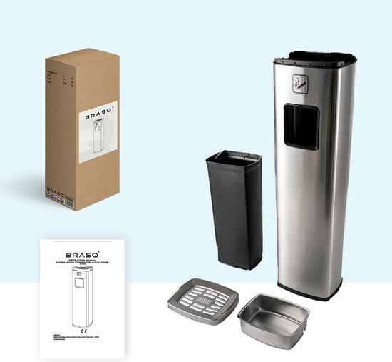 Ontdek de BRASQ Staande Asbak met Afvalbak AT400 - RVS - 20 Liter