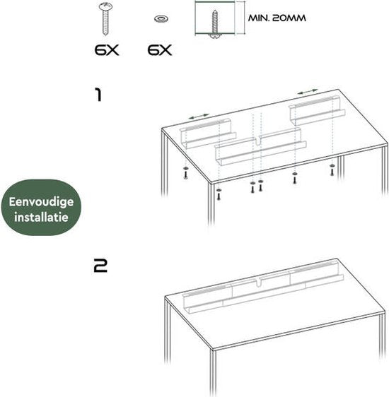 Kies een kleur die aansluit bij jouw kantoor- of werkomgeving: zwart, zilver of wit. De installatie van de kabelgoot is zeer eenvoudig en wordt geleverd met het benodigde bevestigingsmateriaal.