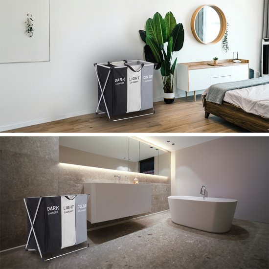 Met drie aparte compartimenten in de kleuren zwart, wit en grijs kun je gemakkelijk je wasgoed scheiden in donkere, lichte en gekleurde kleding. Elk compartiment heeft een royale maat van 32x20x55 cm, zodat je al tijdens het sorteren...Besparen op de wastijd door minder sorteren. Geen gedoe meer vlak voor je gaat wassen! Ideaal voor drukke gezinnen en huishoudens.