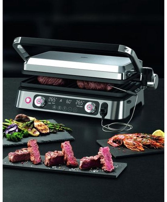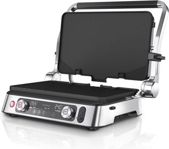 2200 W Rechthoekig Aantal functies: 3 Aantal kookprogramma's: 3 Anti-aanbaklaag Grill oppervlakte: 851 cm² Deksel Benen Ingebouwd display Zwart, Roestvrijstaal