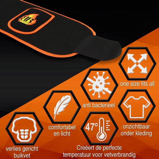 Door de saunawerking verhoogt deze band de temperatuur rond je middel tot wel 10 graden. Dit stimuleert gerichte vetverbranding op precies de plek waar het vaak het moeilijkst verdwijnt: je buik. De dubbele laag geïsoleerd neopreen zorgt ervoor dat je intens zweet aan de binnenkant, terwijl de buitenkant droog en comfortabel blijft. Je draagt de band gemakkelijk onder kleding, zonder dat hij zichtbaar is.