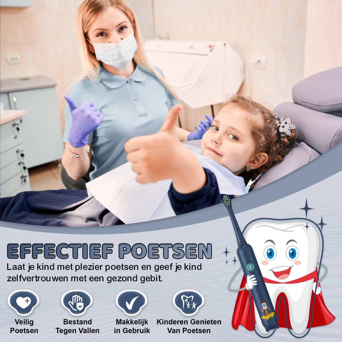 Ontworpen met de veiligheid van kinderen als topprioriteit, biedt onze tandenborstel niet alleen een grondige reiniging, maar ook gemoedsrust voor ouders. Met handige functies zoals een ingebouwde timer van 2 minuten en een ergonomisch ontwerp dat perfect in kleine handjes past, maakt het poetsen leuk en gemakkelijk, terwijl het tegelijkertijd goede gewoonten aanleert die een leven lang meegaan.