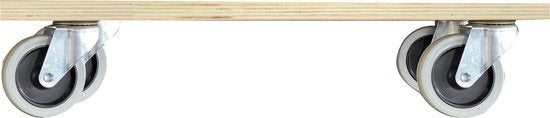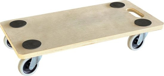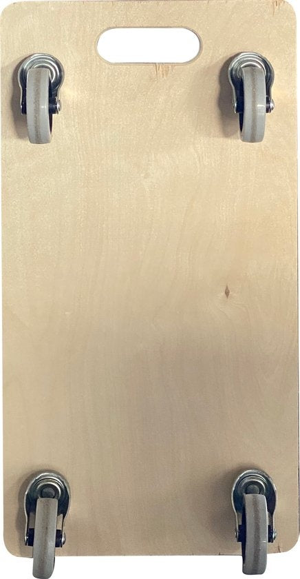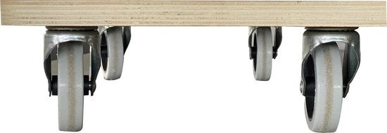 Verhuisplateau gemaakt van MDF. Het rolplateau heeft een dikte van 18mm. Daarnaast heeft deze meubelroller een handvat, zodat deze gemakkelijk is mee te nemen. De meubelroller heeft 4 zwenkbare wielen.